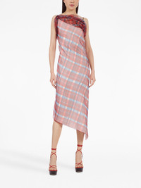asymmetric-hem plaid organza dress Highlights - Brick red/multicolour - Organza - Plaid check pattern - Spaghetti straps - Draped detailing - Square neck - Sleeveless - Asymmetric hem Made in Italy Composition Outer: Polyester 100% SIZE & FIT Measurement HIPS 39.37 in(100 cm) LENGTH 50.39 in(128 cm) WAIST 32.28 in(82 cm) BUST 28.34 in(72 cm)