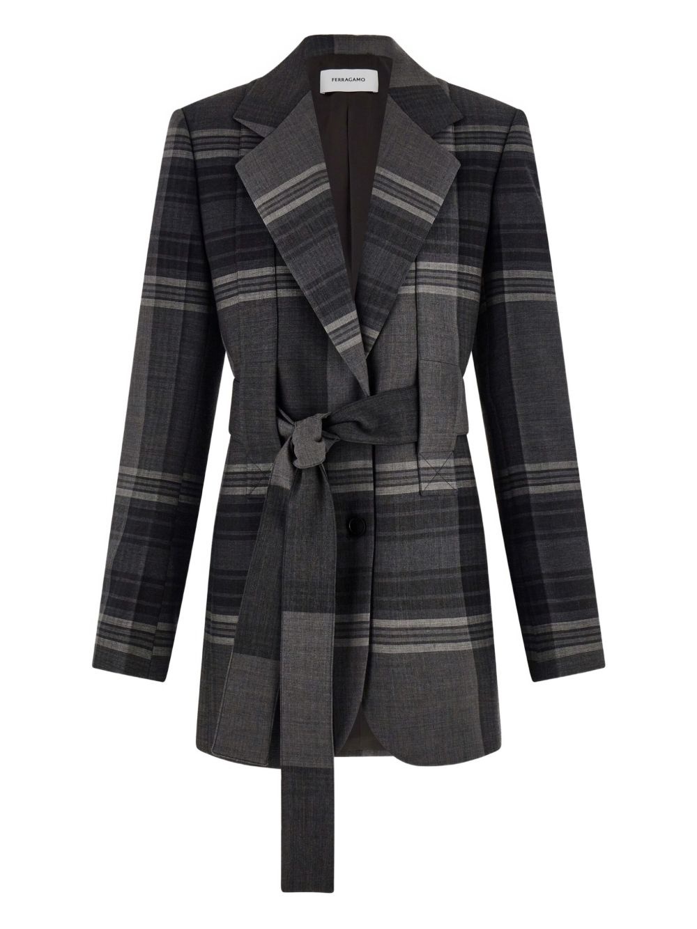 belted blazer Highlights - Black - Front tie fastening - Buttoned cuffs - Tartan check pattern - Long sleeves Made in Italy Composition Outer: Virgin Wool 98%, Silk 2% Lining: Rayon 100%