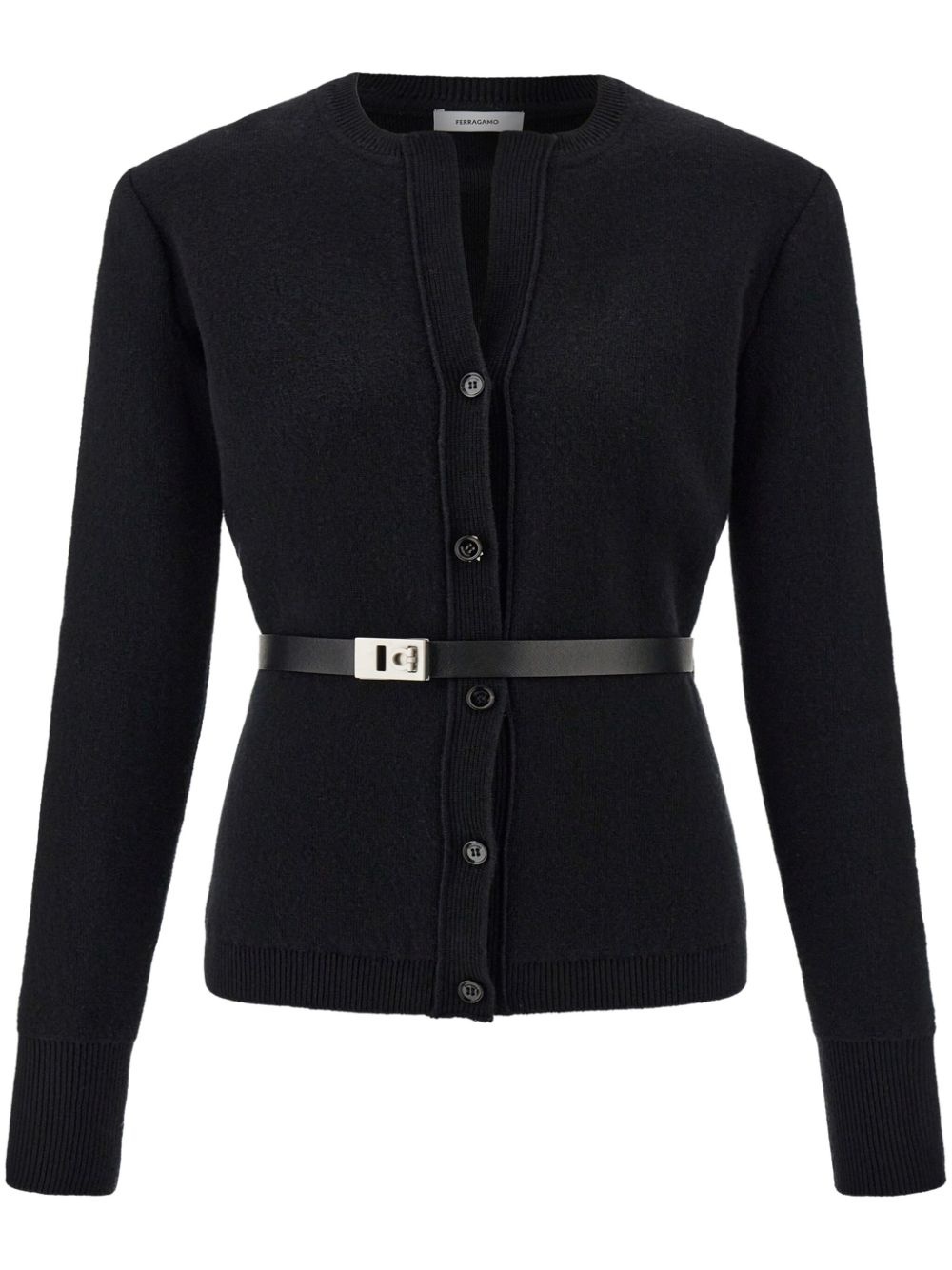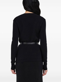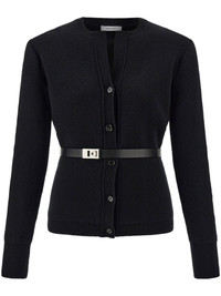 Pure wool cardigan with leather belt