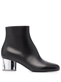 block-heel ankle boots Specialising in footwear since the brand's inception in 1927, these boots from Salvatore Ferragamo feature a silver block heel and polished finish. This highlights the brands longstanding impeccable Italian craftsmanship in a contemporary way, on a timeless design. Made in Italy Composition Lining: Leather 100% Sole: Leather 100% Outer: Calf Leather 100% SIZE & FIT Measurement CIRCUMFERENCE 9.84 in(25 cm) HEEL 2.36 in(6 cm) HEIGHT 5.11 in(13 cm) Sole height 0.39 in(1 cm)