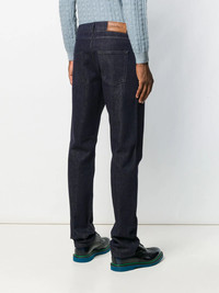 bootcut denim jeans The definition of Italian luxury, Salvatore Ferragamo prides itself on a seamless blend of high-quality materials, impeccable craftsmanship and a timeless design vision. These dark blue cotton bootcut denim jeans feature a waistband with belt loops, a five pocket design, a button and zip fly and a leather brand patch to the rear. Made in Italy Composition Cotton 100% SIZE & FIT Model measurements Height 6 ft 2 in(1.89 m) Bust/Chest 36.22 in(92 cm) Hips 35.82 in(91 cm) Waist 28.74 in(73 cm) FittingInformation This piece fits true to size. We recommend you get your regular size Regular fit Made with a mid-weight non-stretch fabric