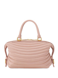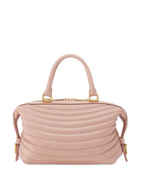 bowling quilted tote bag Highlights - Powder pink - Calf leather - Quilted - Gold-tone hardware - Logo print to the front - Two top handles - Main compartment - Internal logo stamp - Internal slip pocket Made in Italy Composition Outer: Calf Leather 100% Lining: Fabric 98%, Calf Leather 2% SIZE & FIT Measurement DEPTH 6.2 in(15.7 cm) HEIGHT 6.4 in(16.2 cm) STRAP 21.65 in(55 cm) WIDTH 10.2 in(25.9 cm)