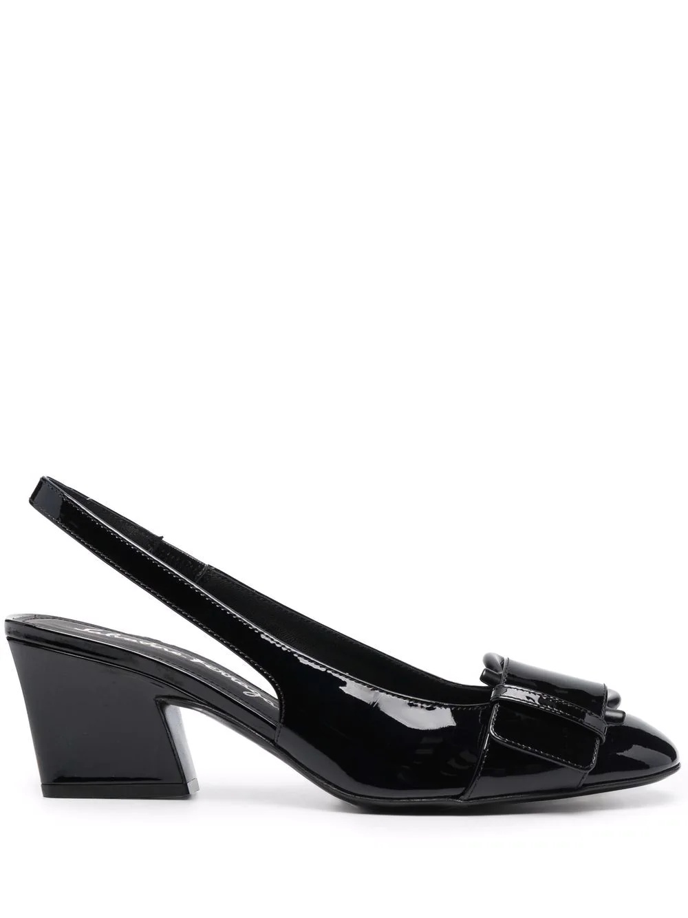 55mm Briget patent-leather slingback pumps Highlights - Black - Patent leather - Round toe - Decorative buckle detail - Slingback strap - Branded leather insole - Low block heel Made in Italy Composition Outer: Patent Leather 100% Lining: Leather 100% Sole: Leather 100% SIZE & FIT Measurement HEEL 2.75 in(7 cm)