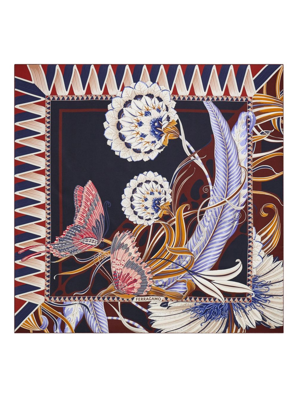 butterfly-print silk scarf Highlights - Navy blue - Butterfly print - Square pattern Made in Italy Composition Silk 100% SIZE & FIT Measurement LENGTH 35.4 in(89.9 cm) WIDTH 35.4 in(89.9 cm) Washing instructions Read Manufacturer Guidelines