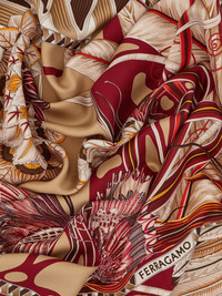 butterfly-print silk scarf Highlights - Beige and red - Butterfly print - Silk Made in Italy Composition Silk 100% SIZE & FIT Measurement LENGTH 35.4 in(89.9 cm) WIDTH 35.4 in(89.9 cm) Washing instructions Read Manufacturer Guidelines