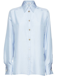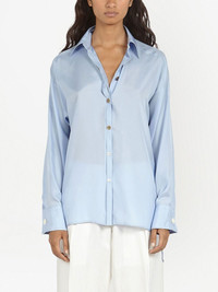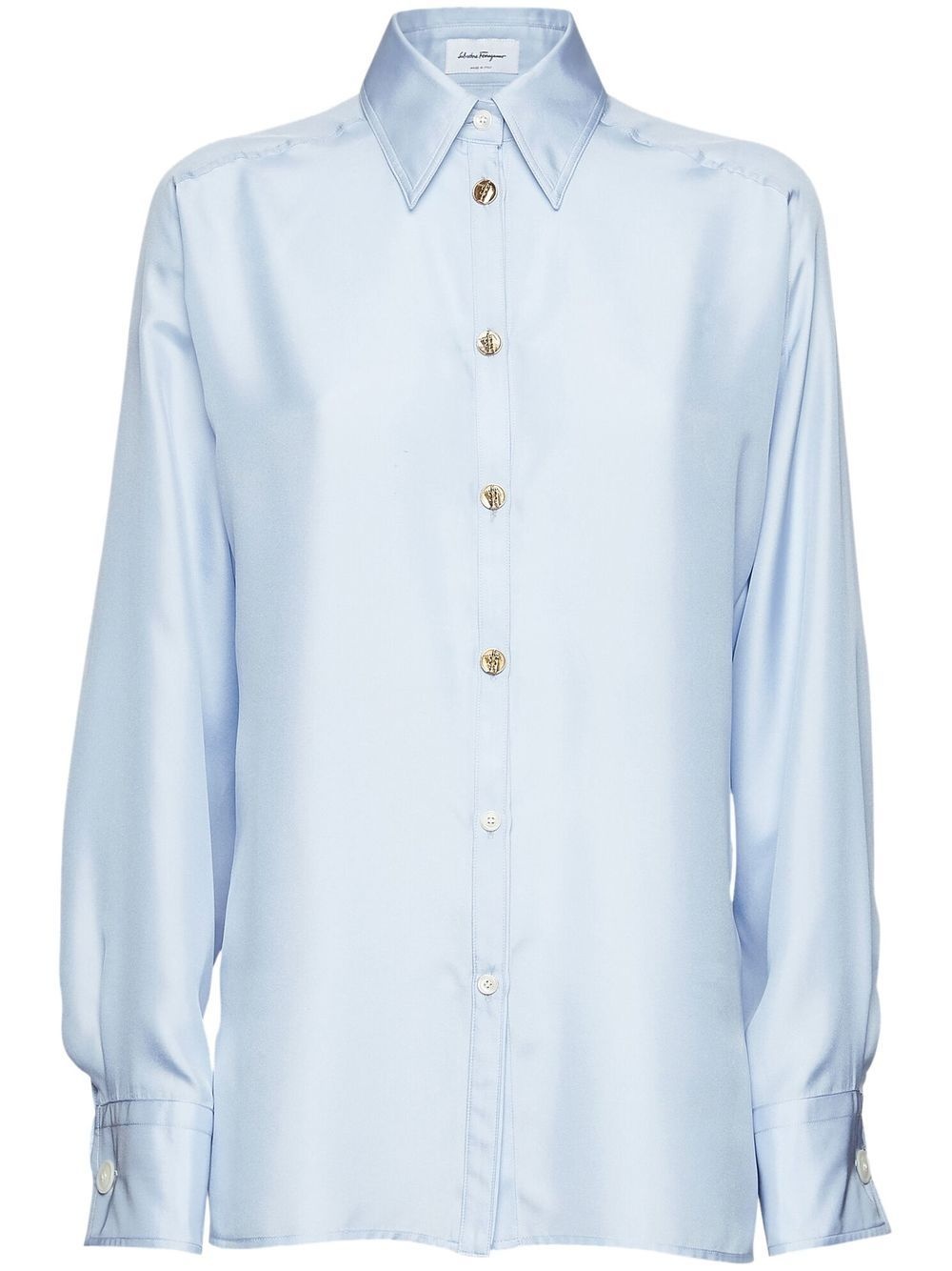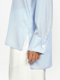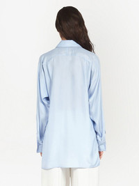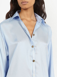 button-front satin shirt light blue silk blend satin finish classic collar front button fastening long sleeves curved hem Made in Italy Composition Silk 58%, Polyester 42%