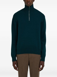 cashmere pullover Highlights - Moss green - Half front zip fastening - High neck - Long sleeves - Ribbed cuffs and hem Made in Italy Composition Cashmere 100%