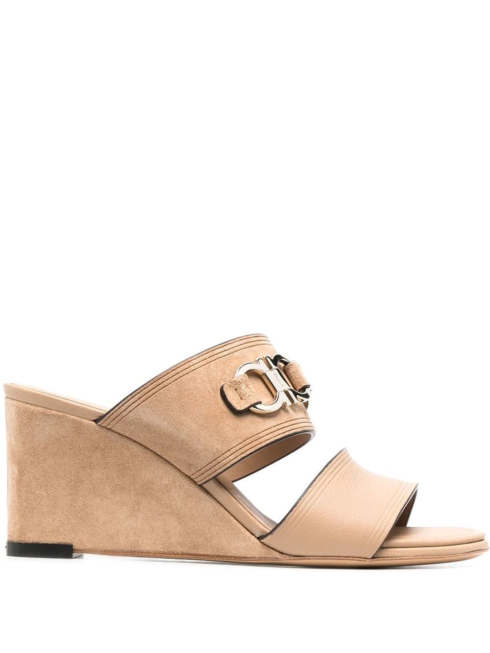 Chaim 75mm suede wedge mules beige calf leather slip-on style double-strap design gold-tone logo plaque open toe branded leather insole mid wedge heel Made in Italy Composition Outer: Calf Suede 100% Lining: Calf Leather 100% Sole: Calf Leather 100% SIZE & FIT Measurement HEEL 2.95 in(7.5 cm) Sole height 0.39 in(1 cm)