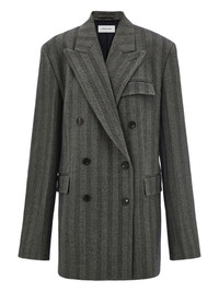 chevron-pattern double-breasted coat Highlights - Black - Chevron pattern - Double-breasted fastening - Diagonal buttonholes - Pressed pleat - Virgin wool Made in Italy Composition Virgin Wool 92%, Polyamide 6%, Elastane 2% Washing instructions Read Manufacturer Guidelines