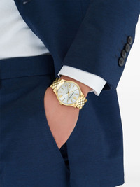 Pair Duo 40mm Highlights - 40mm - Stainless steel case - Quartz - Silver dial - Index/roman numeral/gancini dial - Engraved bezel - Logo-embossed crown - Stainless steel link bracelet - Deployant-clasp fastening - Water resistance up to 50m/5 atm - This item comes with a standard two-year warranty from the brand. Imported Composition Sapphire Crystal 100%, stainless steel 100% SIZE & FIT Measurement DIAMETER 1.57 in(4 cm)