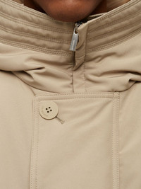 classic-hood padded jacket Highlights - Sand beige - Padded design - Logo-engraved buttons - Classic hood - Concealed front fastening - Two side flap pockets - Long sleeves - Buttoned-cuff sleeves - Straight hem Made in Italy Composition Outer: Polyester 84%, Cotton 16% Lining: Polyester 100%