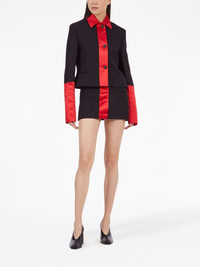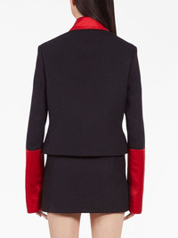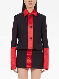 colour-block cropped jacket Highlights - Black/red - Silk - Satin finish - Colour-block design - Cropped - Straight-point collar - Front button fastening - Long sleeves - Curved hem Made in Italy Composition Outer: Wool 48%, Acrylic 35%, Polyester 17% SIZE & FIT Measurement SLEEVE LENGTH 17.71 in(45 cm) LENGTH 20.07 in(51 cm) WAIST 35.43 in(90 cm) BUST 35.43 in(90 cm)