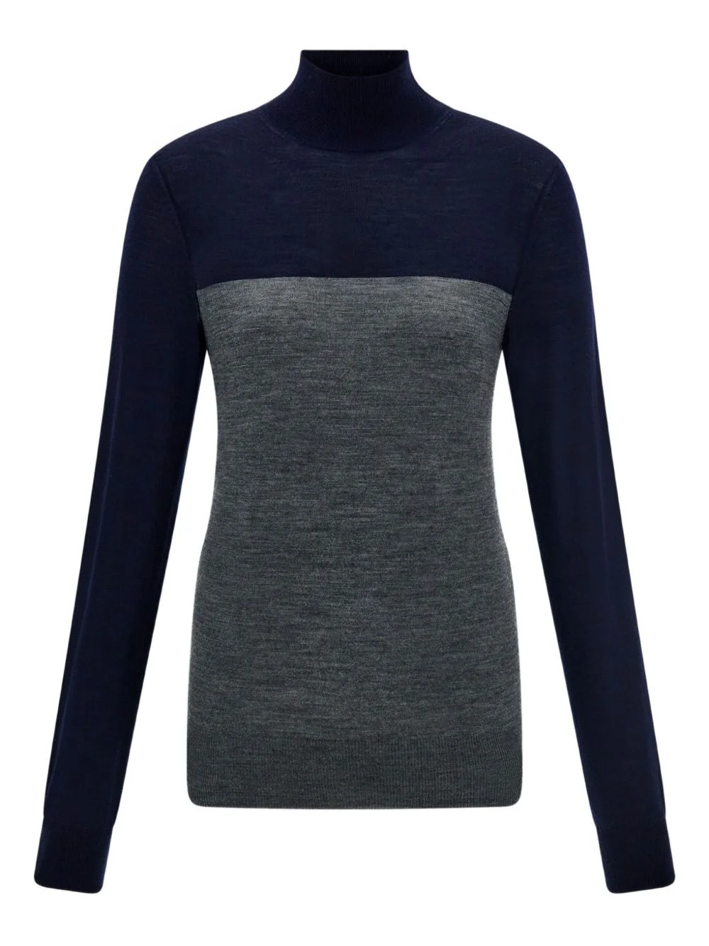 colour-block high-neck sweater Highlights - Charcoal/navy blue - Colour-block design - Ribbed knit trims - High neck - Long sleeves - Fine knit Made in Italy Composition Virgin Wool 100% Washing instructions Read Manufacturer Guidelines