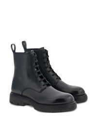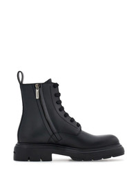 Combat leather boots Highlights - Black - Leather - Pull-tab at the heel - Round toe - Side zip fastening - Front lace-up fastening - Ridged rubber sole Made in Italy Composition Outer: CALFSKIN 100% Lining: CALFSKIN 100%