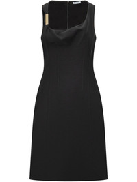 corseted midi dress Highlights - Black - Concealed rear zip fastening - Gathered neckline - Central rear vent - Movable clasp detail Made in Italy Composition Viscose 73%, Virgin Wool 27%