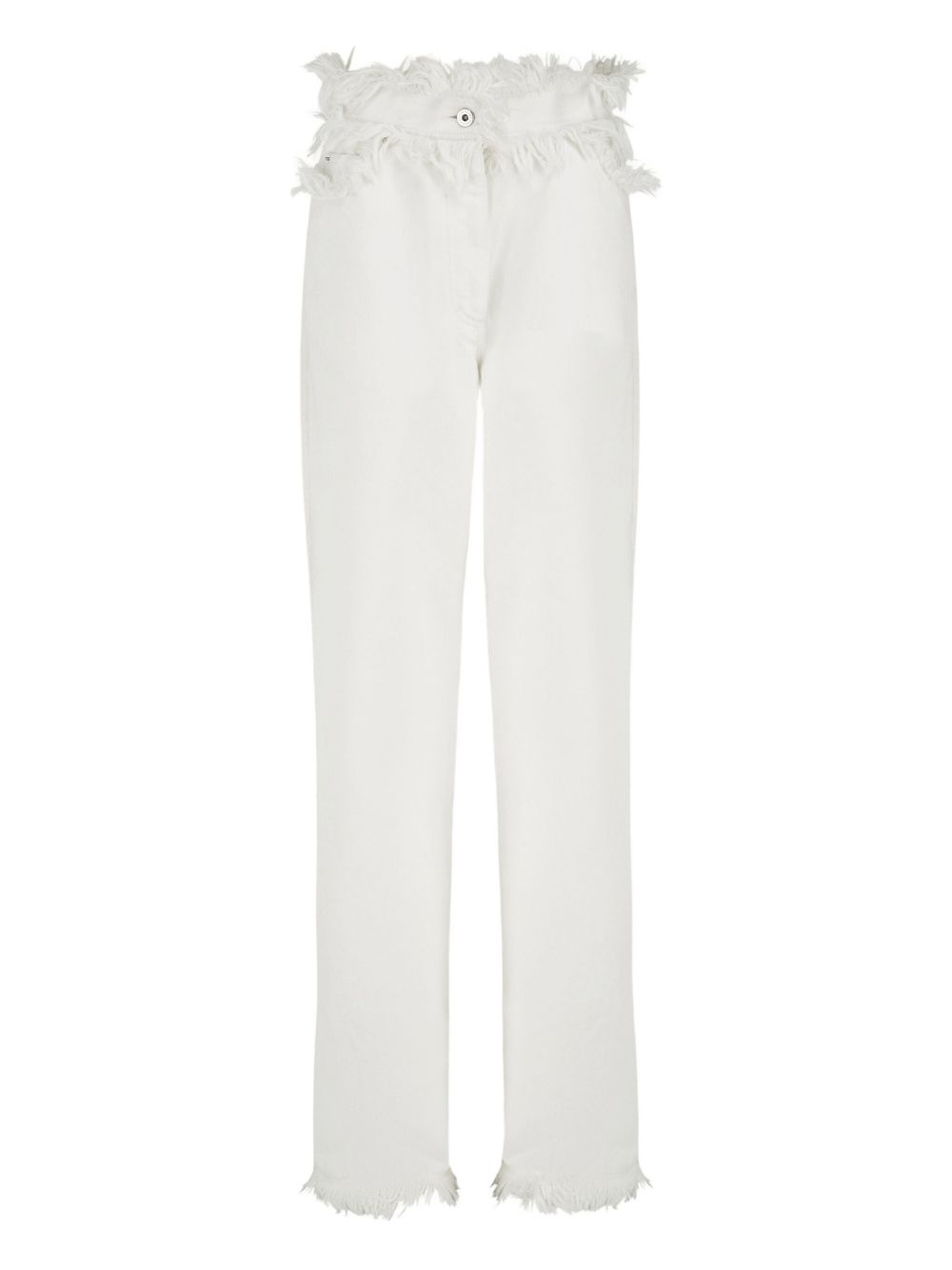 cotton jeans Highlights - White - Front button fastening - Frayed detailing - Two side slit pockets - Straight leg Made in Italy Composition Outer: Cotton 100% Lining: Polyester 65%, Cotton 35%