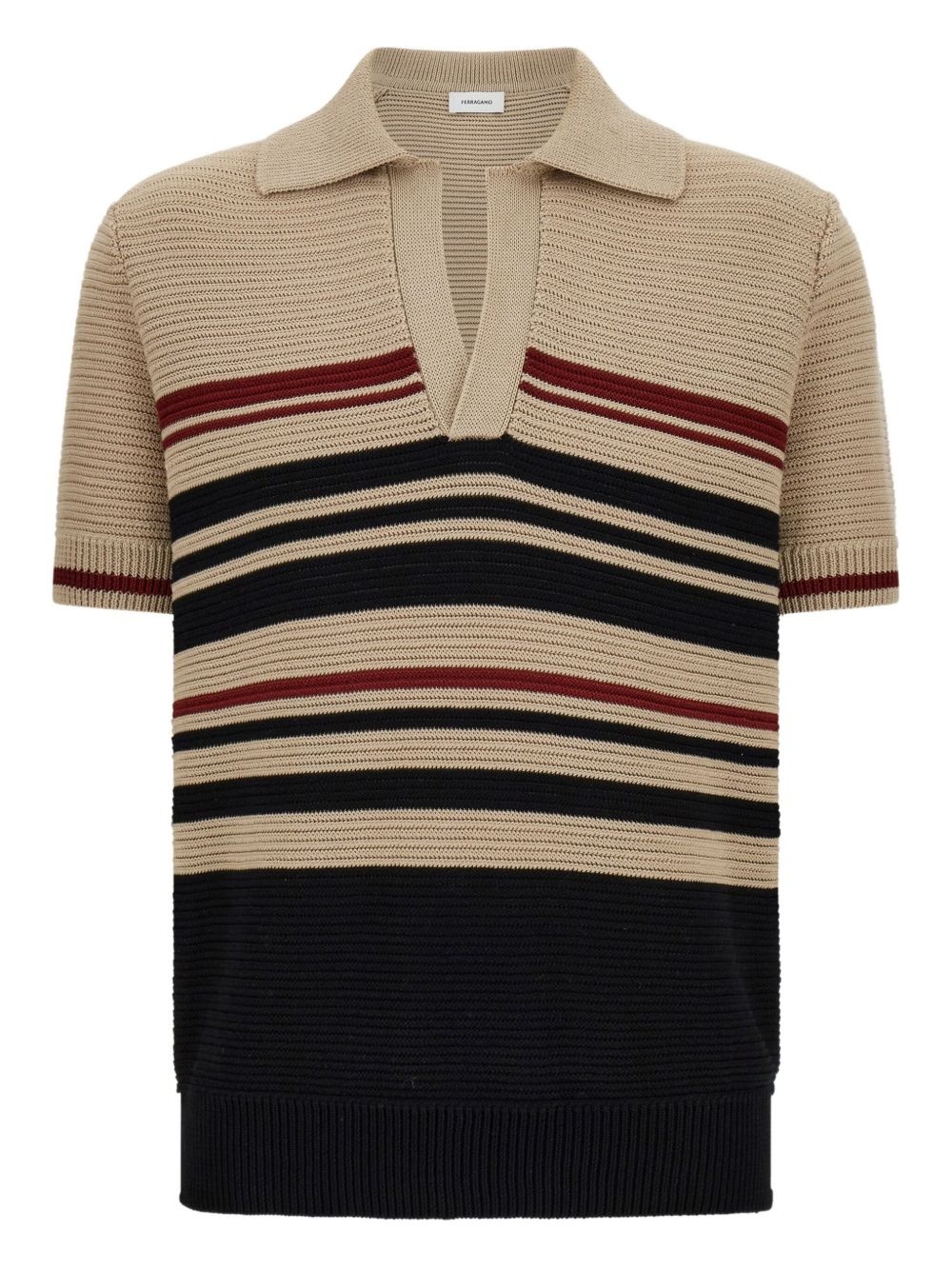 cotton polo shirt Highlights - Archive beige - V-neck - Short sleeves - Horizontal stripe pattern - Ribbed trim Made in Italy Composition Cotton 100%