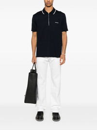 cotton polo shirt Highlights - Navy blue - Short front zip fastening - Polo collar - Embroidered logo at the chest - Short sleeves Made in Italy Composition Cotton 100% SIZE & FIT Model measurements Height 6 ft 2 in(1.87 m) Bust/Chest 38.18 in(97 cm) Hips 36.61 in(93 cm) Waist 29.13 in(74 cm) FittingInformation Designed for a relaxed fit, this polo shirt offers comfort and movement Made from a midweight non-stretch fabric, this piece offers minimal elasticity when worn