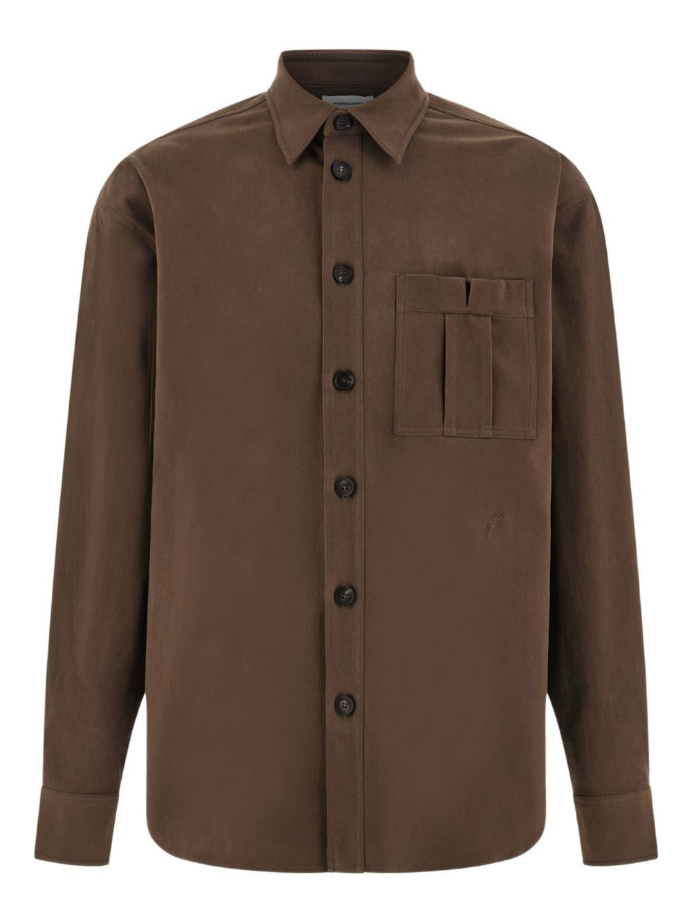 cotton shirt jacket Highlights - Brown - Chest pocket - Yoke back - Buttoned placket - Long sleeves Made in Italy Composition Cotton 97%, Elastane 3% Washing instructions Read Manufacturer Guidelines