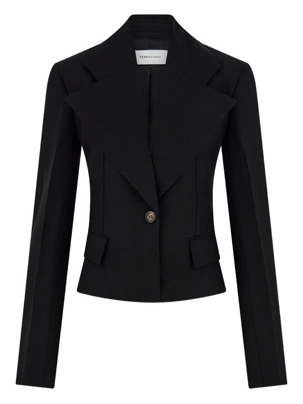 cropped blazer Highlights - Black - Front button fastening - Wide peak lapels - Pleat detailing Made in Italy Composition Outer: Viscose 73%, Virgin Wool 27% Lining: Rayon 100%