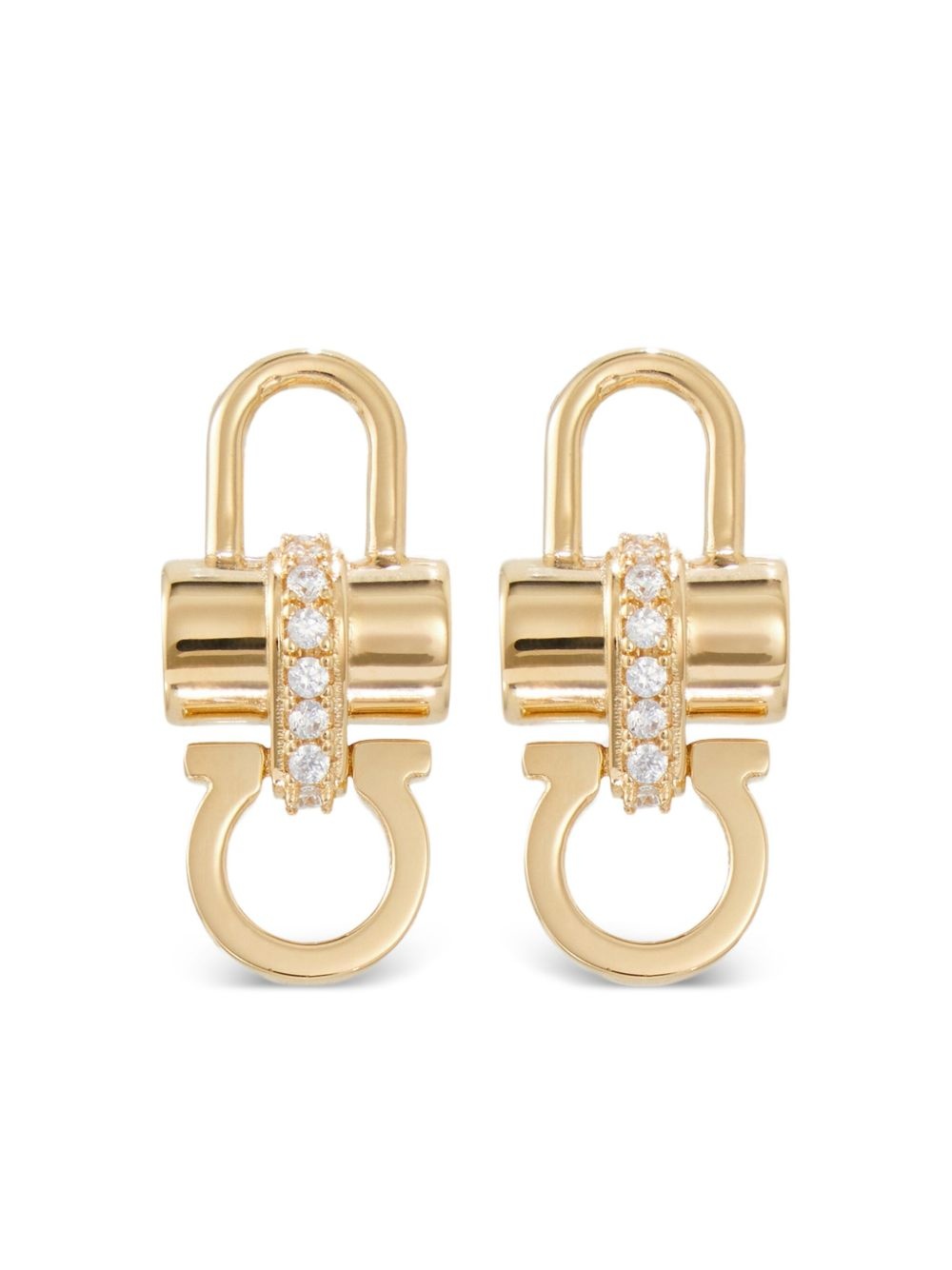 crystal embellished padlock earrings Highlights - Gold-tone - Post-back fastening - Padlock detail - Engraved logo - Crystal embellishment Made in Italy