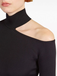 cut-out knitted midi dress Highlights - Black - Stretch-design - Knitted construction - Cut-out detailing - High neck - Long sleeves - Flared hem - Below-knee length Made in Italy Composition Outer: Viscose 75%, Nylon 23%, Polyurethane 2% SIZE & FIT Measurement LENGTH 42.51 in(108 cm)