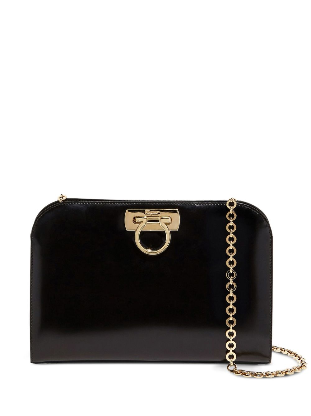 Diana leather clutch Highlights - Black - Calf leather - Gancini buckle - Gold-tone hardware - Internal logo patch - Internal zip-fastening pocket - Detachable chain-link shoulder strap - Main compartment Made in Italy Composition Outer: CALFSKIN 100% Lining: Nylon 65%, Polyurethane 35% SIZE & FIT Measurement DEPTH 2.36 in(6 cm) HEIGHT 5.11 in(13 cm) WIDTH 6.49 in(16.5 cm)