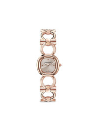 Double Gancini 25mm Highlights - 25mm - Rose gold/stainless steel - Quartz movement - Round face - Grey - Sunray-patterned dial - Sapphire-crystal glass - Screw-down crown - Double gancini bracelet - Buckle fastening - Water resistance up to 50m/5 atm - This item comes with a standard two-year warranty from the brand. Imported SIZE & FIT Measurement DIAMETER 0.98 in(2.5 cm)