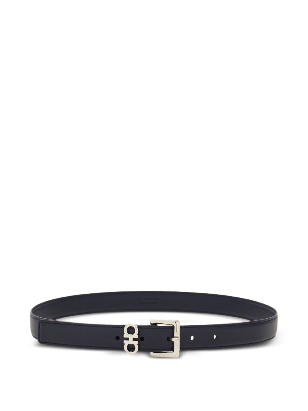 Double Gancini belt Highlights - Navy blue - Buckle fastening - Punched holes - Flat tip Made in Italy Composition CALFSKIN 100% SIZE & FIT Measurement WIDTH 0.98 in(2.5 cm)