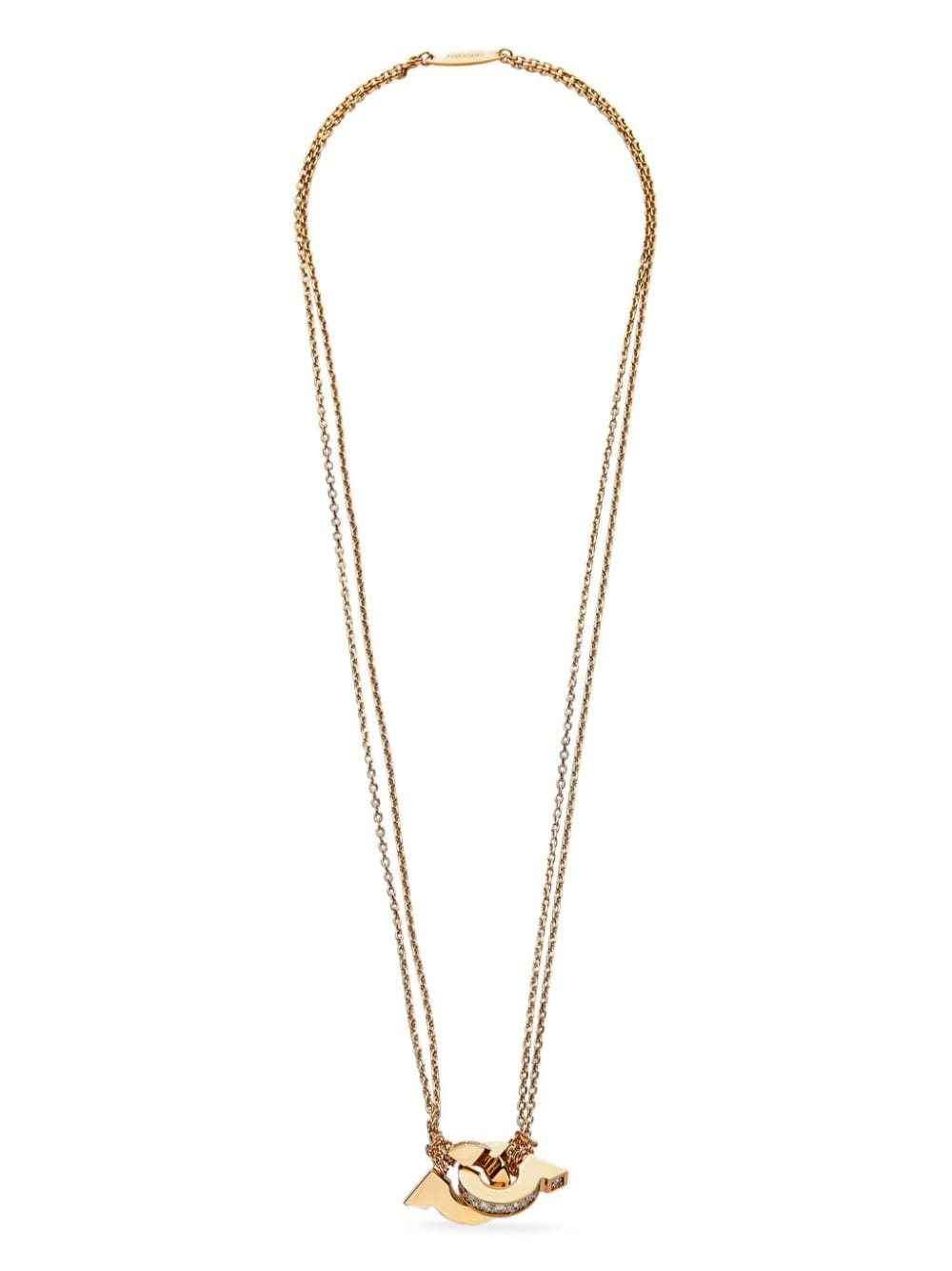 Double Gancini pendant necklace Highlights - Gold-tone - Polished finish - Delicate chain - Double gancini pendant - Crystal embellishment - Hook fastening Made in Italy