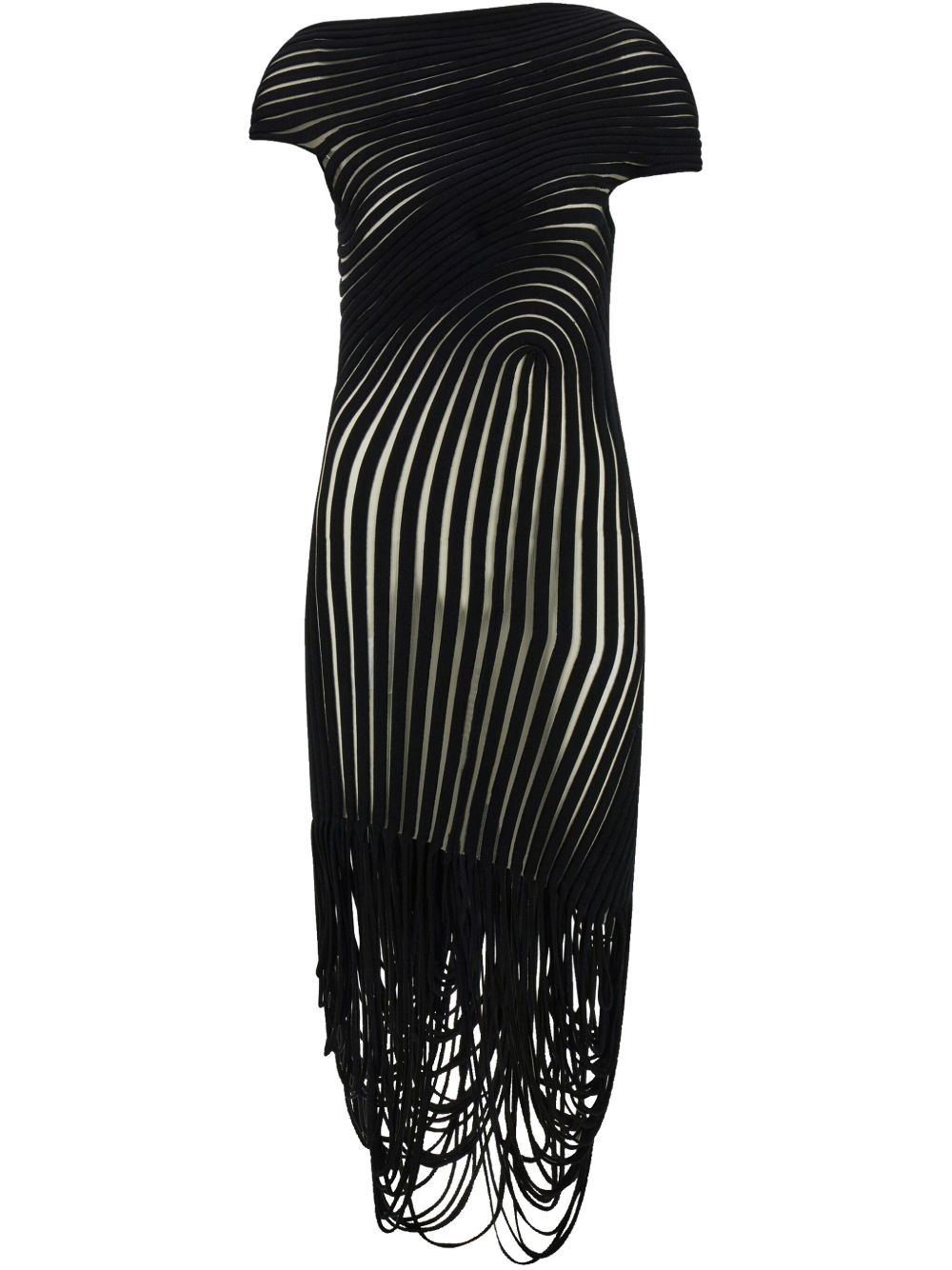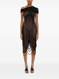 draped asymmetric midi dress Highlights - Black - Asymmetric neck - Short sleeves - Asymmetric hem Made in Italy Composition Viscose 70%, Polyester 30%