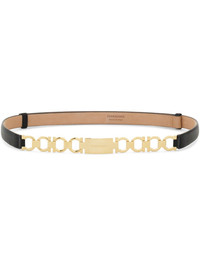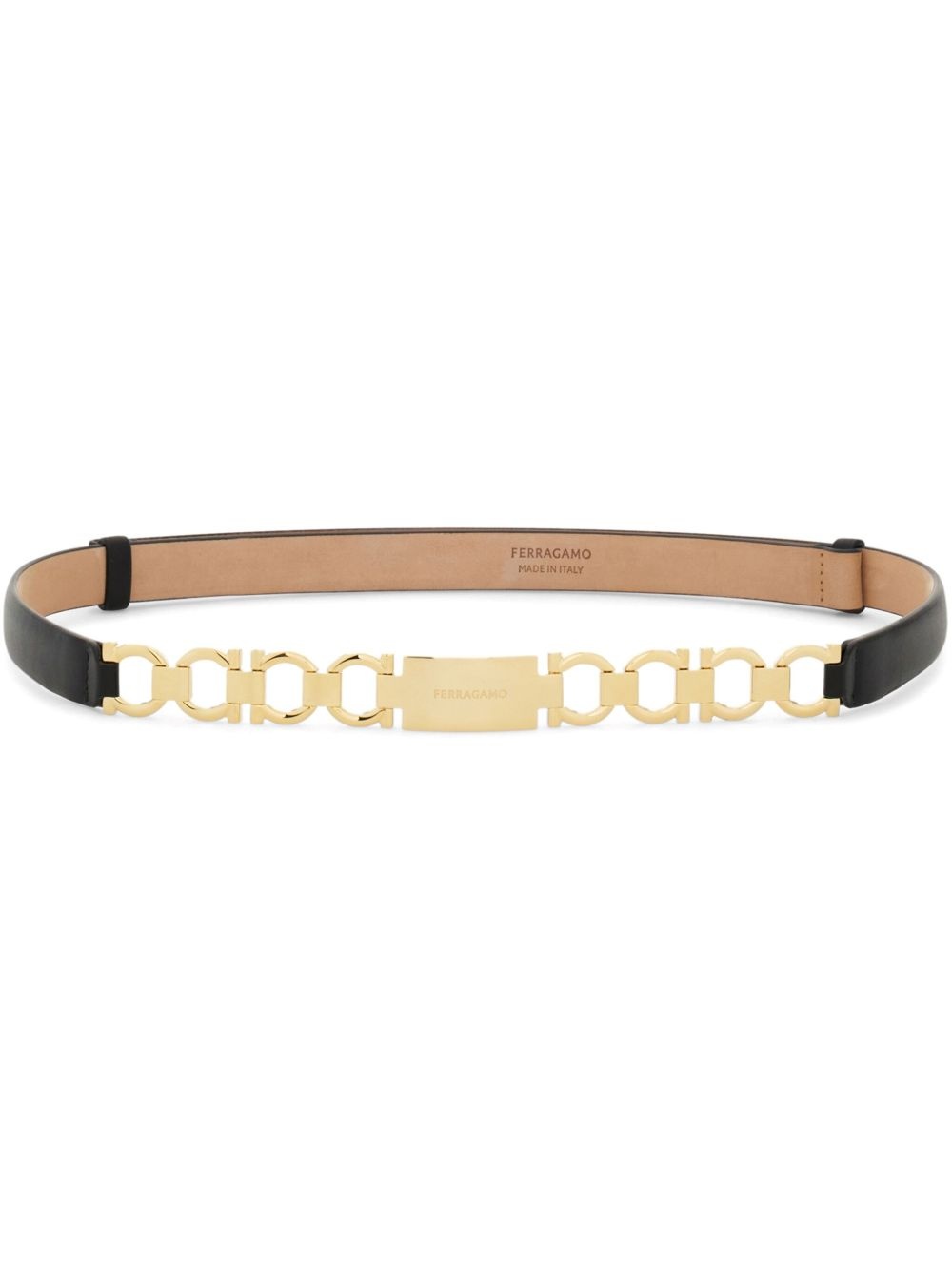 Extendable Gancini bijoux belt Highlights - Black - Gold-tone - Calf leather - Smooth grain - Gancini plaque - Chain-link detailing - Engraved logo - Adjustable fit Made in Italy Composition CALFSKIN 100% SIZE & FIT Measurement WIDTH 0.7 in(1.8 cm)