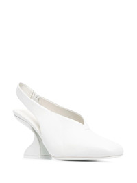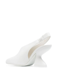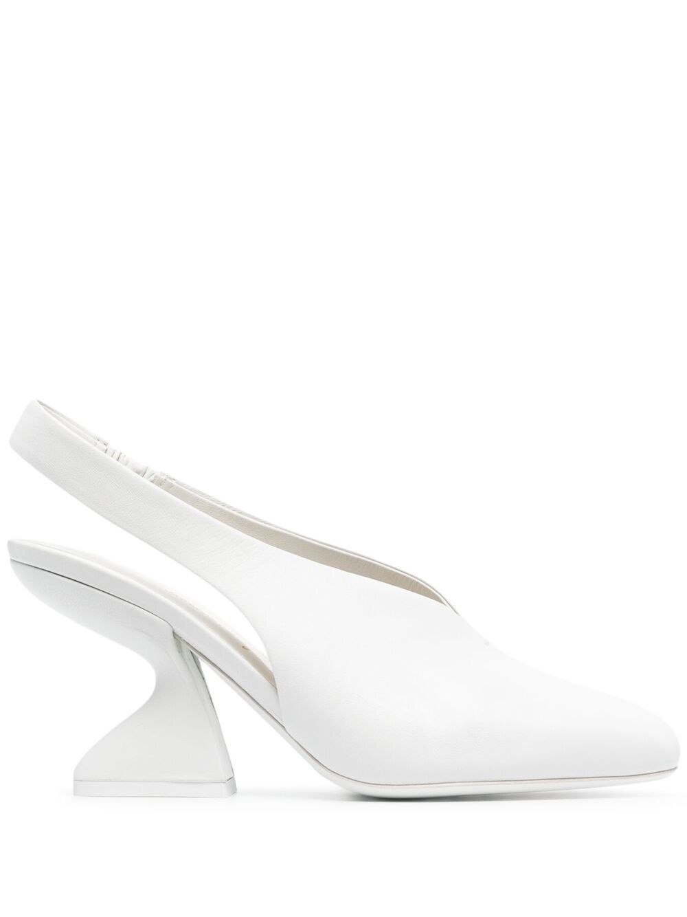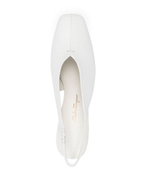 White leather F-heel 95mm slingback pumps from SALVATORE FERRAGAMO featuring square toe, slingback strap, branded insole, high sculpted heel and slip-on style. Highlights - White - Leather - Square toe - Slingback strap - Branded insole - High sculpted heel - Slip-on style Made in Italy Composition outer: Leather 100% lining: Leather 100% sole: Leather 100% Product measurements for size: 7.5 (US) Heel: 9.5 cm (3.7 in)