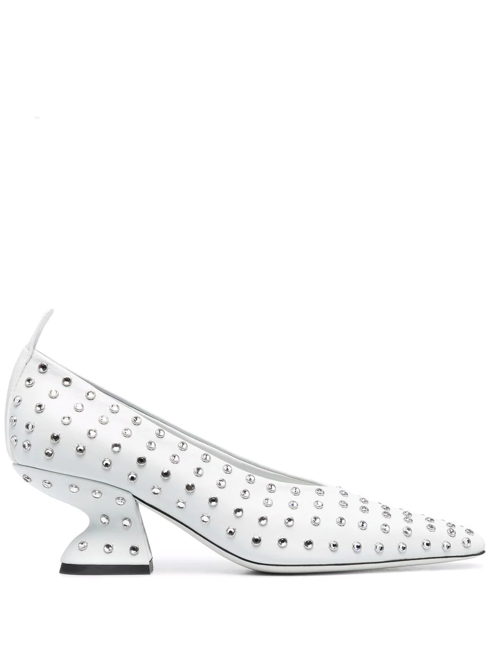 60mm F-heel rhinestone pumps Highlights - Arctic-blue - Leather - Rhinestone embellishment - Low sculpted heel - Pull-tab at the heel - Slip-on style - Pointed toe Made in Italy Composition Outer: Leather 100% Lining: Leather 100% Sole: Leather 100%, Rubber 100% SIZE & FIT Measurement HEEL 2.36 in(6 cm) Sole height 0.39 in(1 cm)