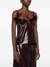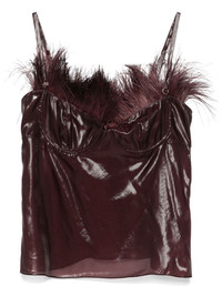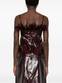 feather-embellished organza top Highlights - Aubergine purple - Ostrich feather - Organza - Semi-sheer construction - Concealed rear zip fastening - Adjustable spaghetti straps - Sweetheart neck - Built-in underwire bra - Unlined - Straight hem Made in Italy Composition Ostrich Feather 100%, Polyamide 75%, Silk 25% SIZE & FIT Model measurements Height 5 ft 11 in(1.8 m) Bust/Chest 32.67 in(83 cm) Hips 36.22 in(92 cm) Waist 24.4 in(62 cm) FittingInformation Designed for a slim fit that sits just away from the body offering a close yet comfortable fit The adjustable shoulder straps allow for a preferred fit when worn Made from a lightweight non-stretch fabric