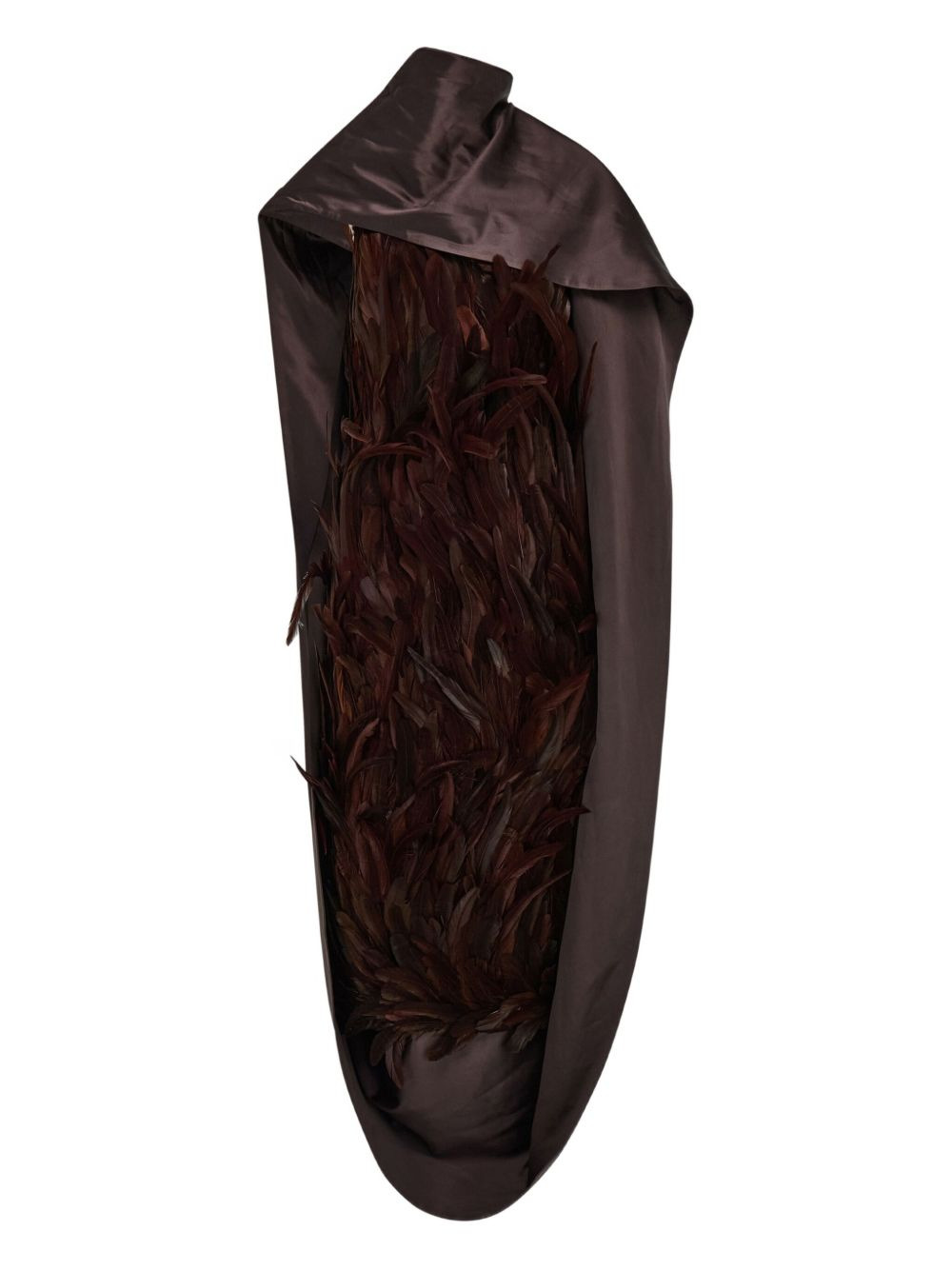 feather-embellished satin dress Highlights - Dark brown - Grouse feather embellishment - Hand-sewn feathers - Satin fabric - Draped neckline - One-shoulder design Made in Italy Composition Outer: Viscose 100% Lining: Rayon 100% Washing instructions Read Manufacturer Guidelines
