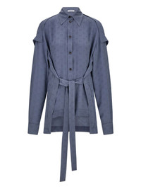 Ferragamo monogram shirt Highlights - Pastel blue - Front button fastening - Classic collar - Sash detail - Buttoned cuffs Made in Italy Composition Organic Silk 100%