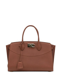 Ferragamo Studio leather tote bag Highlights - Brown - Top handles - Adjustable detachable shoulder strap Made in Italy Composition Outer: Calf Leather 100% Lining: Leather 100% SIZE & FIT Measurement DEPTH 6.5 in(16.5 cm) HEIGHT 9.5 in(24.1 cm) WIDTH 14.1 in(35.8 cm)