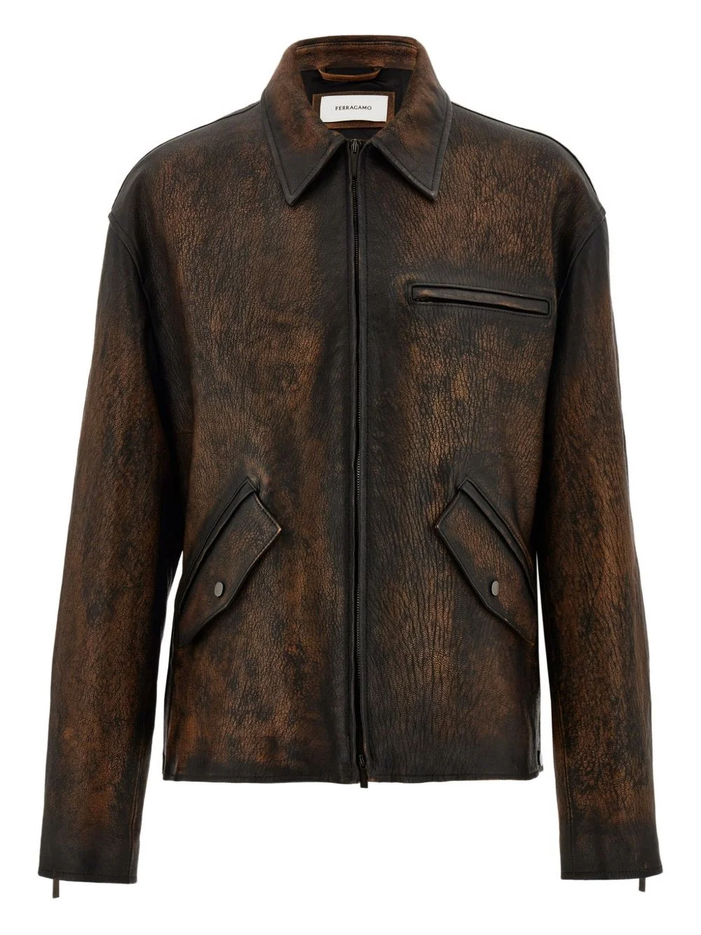 Flap Pocket Zip Leather jacket Highlights - Brown - Two-way zip fastening - Welt pocket - Flap pockets - Snap buttons - Padded Made in Italy Composition Outer: Goat Skin 100% Lining: Kid Leather 100% Washing instructions Read Manufacturer Guidelines