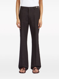 flared cotton chino trousers Highlights - Black - Cotton - Pressed crease - Silver-tone logo plaque - Mid-rise - Concealed fly and button fastening - Belt loops - Two side slit pockets - Two rear welt pockets - Flared - Long length - Straight hem Made in Italy Composition Outer: Cotton 100% Lining: Cotton 100%