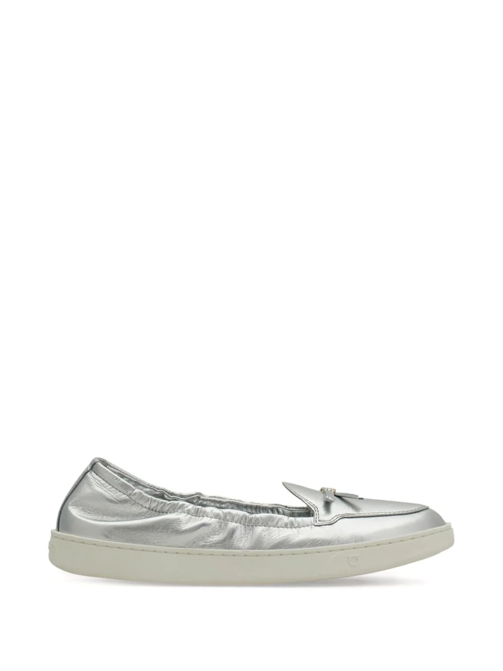 flexible loafers with mini bow-detail Highlights - Fresh and playful, this loafer inspired hybrid sneaker is cut from laminated nappa leather with a warm glow. the elastic inserts around the instep ensure a comfortable, flexible fit and the mini bow with golden buckle adds a girly twist. ultra-light rubber sole with custom tread. - Silver-tone - Gold-tone buckle Made in Italy Composition Outer: Calf Leather 100% Sole: Rubber 100% Lining: Calf Leather 100%