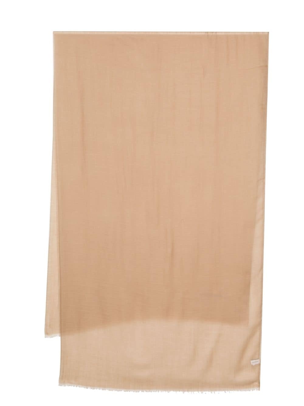 frayed-hem cashmere scarf Highlights - Beige - Cashmere - Fine knit - Mini logo tag - Rectangle shape - Frayed hem Made in Italy Composition Cashmere 100% SIZE & FIT Measurement LENGTH 94.48 in(240 cm) WIDTH 61.02 in(155 cm) Washing instructions Dry Clean Only