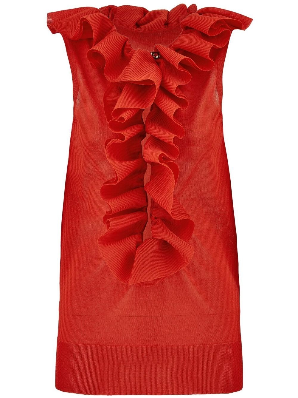 frill-detail virgin wool top bright red virgin wool ruffled detailing crew neck sleeveless straight hem Made in Italy Composition Virgin Wool 100%