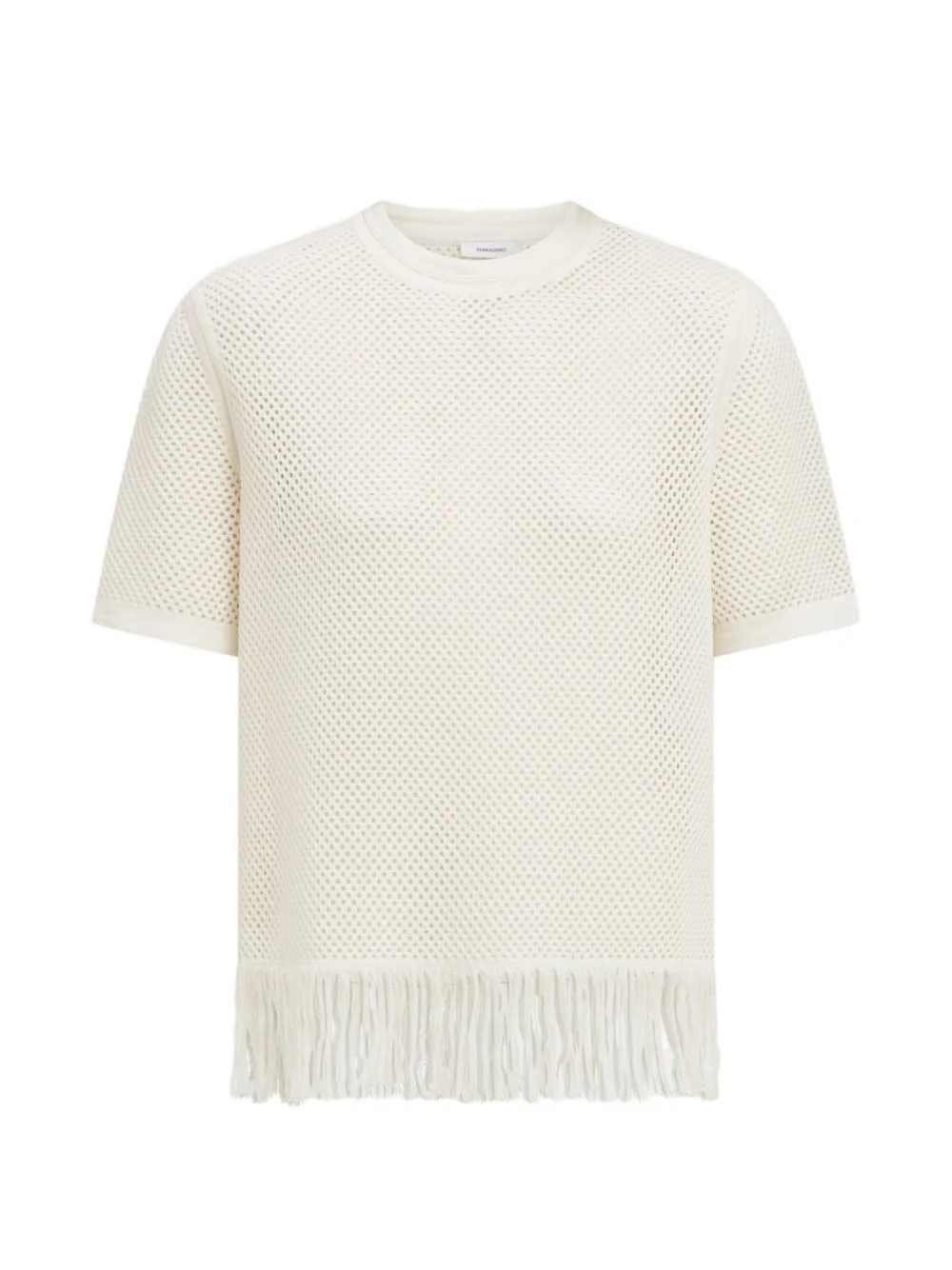 fringed net T-shirt Highlights - White - Net detail - Fringed hem - Round neck - Short sleeves Made in Italy Composition Virgin Wool 100% Washing instructions Read Manufacturer Guidelines