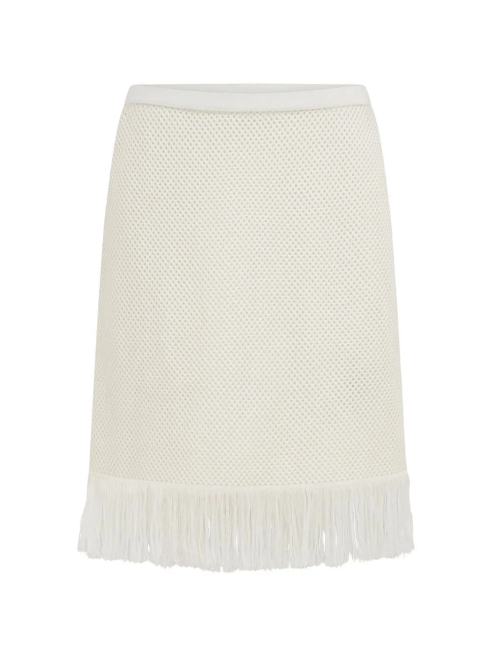fringed-trim mini skirt Highlights - White - Fringed trim - Textured finish - Elasticated waistband Made in Italy Composition Virgin Wool 100% Washing instructions Read Manufacturer Guidelines