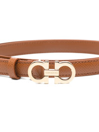 gancini belt Highlights - Natural resort - Gancini detail - Gold-tone hardware - Adjustable fit - Pin buckle fastening - This piece comes complete with a protective dust bag. Made in Italy Composition Brass 100%, Calf Leather 100% SIZE & FIT Measurement Maximum Length 35.43 in(90 cm) Minimum Length 31.49 in(80 cm) WIDTH 0.59 in(1.5 cm)