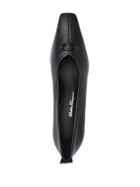 60mm Gancini pumps Salvatore Ferragamo keeps their most iconic motif current with innovative iterations, as seen in these pumps. Set atop a charismatic block heel, they’re accented with micro Gancini plaques to the front. Highlights - Black - Leather - Gancini plaque - Branded insole - Square toe - Pull-tab at the heel - Mid block heel Made in Italy Composition Sole: Rubber 100%, Calf Leather 100% Lining: Calf Leather 100% Outer: Calf Leather 100% SIZE & FIT Measurement HEEL 2.36 in(6 cm)