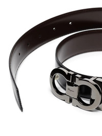 Gancini buckle belt Need to keep your look tight and right? Buckle up with this Ferragamo Gancini buckle belt that ensures your outfit is always put together. Secure this accessory into your closet today. Highlights - This black and brown salvatore ferragamo gancini reversible leather belt boasts expert italian craftsmanship. it features an adjustable length, a polished gunmetal tone buckle engraved with a brand logo, and a brown reverse side. we all know you have a - Black belt - in shopping. this salvatore ferragamo accessory will make that obvious to everyone else. Made in Italy Composition Calf Leather 100%, Metal 100% SIZE & FIT Model measurements Height 6 ft 3 in(1.91 m) Bust/Chest 37 in(94 cm) Hips 37.79 in(96 cm) Waist 28.34 in(72 cm) Measurement Minimum Length 33.46 in(85 cm) TOTAL LENGTH 37.4 in(95 cm) WIDTH 1.37 in(3.5 cm)