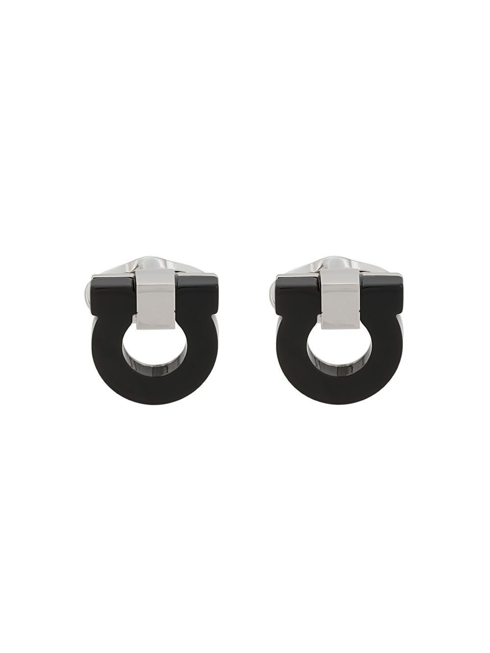 Gancini buckle cufflinks Sorry, but we're adding another item to your list of things to remember when leaving the front door and it's this sleek pair of Gancini cufflinks by Salvatore Ferragamo. You'll thank us later. Highlights - Black - Stone - Black - Brass - Gancini buckle - Engraved logo - Twist-lock fastening - Sold in pairs. Made in Italy Composition Silver Plated Brass 100% SIZE & FIT Measurement WIDTH 0.59 in(1.5 cm) HEIGHT 0.78 in(2 cm)