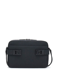 Gancini buckle embellished leather shoulder bag Highlights - Black - Calf leather - Pebbled texture - Debossed logo to the front - Internal logo patch - Gancini buckle - Tonal stitching - Top zip fastening - Adjustable shoulder strap - Slip pocket to the front - Internal zip-fastening pocket - Main compartment Made in Italy Composition Outer: CALFSKIN 100% Lining: Fabric 95%, CALFSKIN 5% SIZE & FIT Measurement DEPTH 2.36 in(6 cm) HEIGHT 6.29 in(16 cm) WIDTH 9.44 in(24 cm)